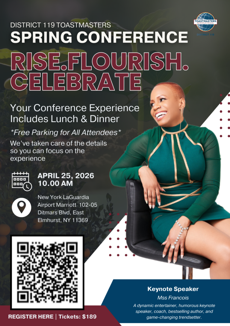 - Beyond District: The winner of each District contest advances to international-level rounds, including the World Championship of Public Speaking® at Toastmasters International’s annual convention that will take place during the 2026 Toastmasters International Convention in Vancouver, British Columbia, Canada, from August 19–22, 2026.